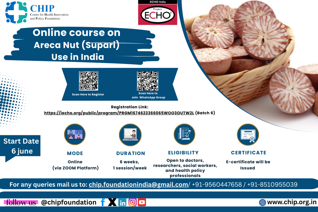 🧠 𝐀𝐫𝐞𝐜𝐚 𝐍𝐮𝐭 𝐔𝐬𝐞 𝐢𝐧 𝐈𝐧𝐝𝐢𝐚: Myths, Realities, and Health Risks Empowering Healthcare Providers & Public Health Professionals 🌟 𝐖𝐡𝐲 𝐉𝐨𝐢𝐧? Areca nut (supari) is deeply woven into Indian culture—but so are its serious health risks, including links to oral cancer. This online course will empower you to: ✅ Understand the science behind areca nut use ✅ Apply behavior change communication strategies ✅ Navigate policy & design intervention models